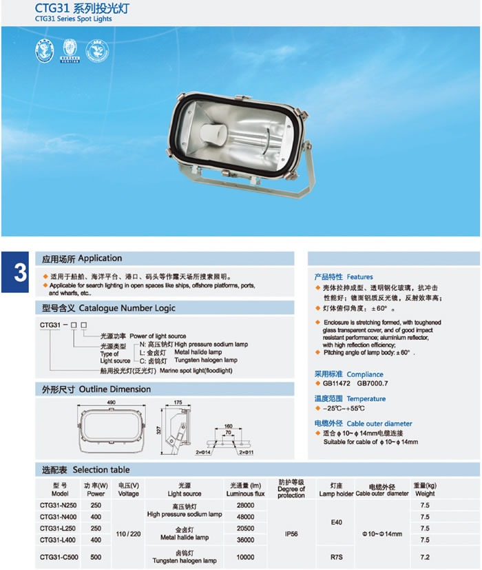 • 產(chǎn)品名稱:CTG31系列投光燈