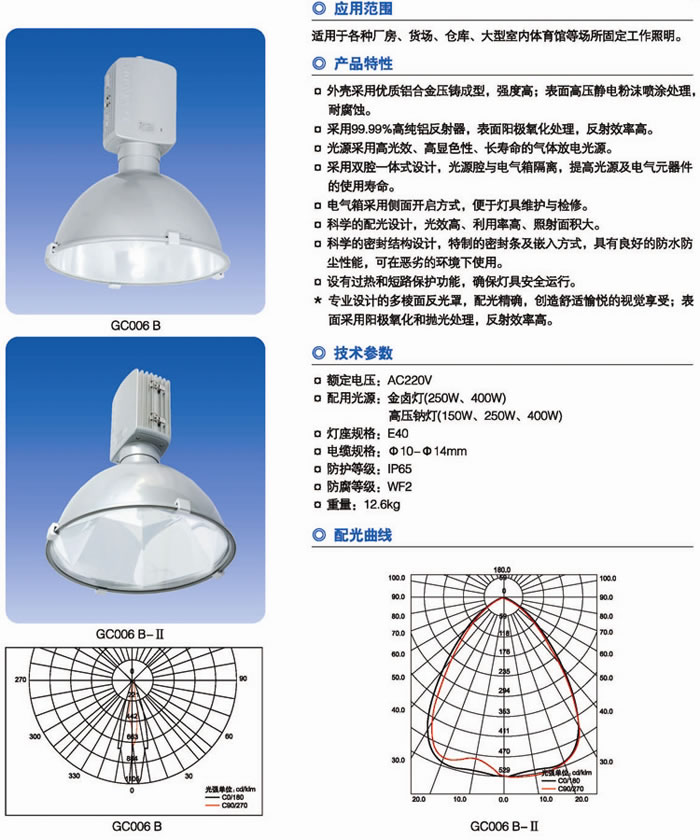 • 產(chǎn)品名稱:GC006防水防塵防震高頂燈