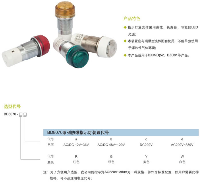 • 產(chǎn)品名稱:BD8070系列防爆指示燈裝置